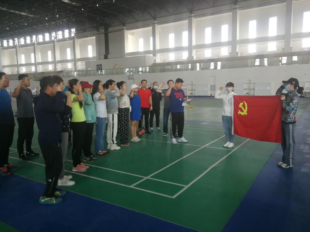 为庆祝中国共产党成立99周年,深入贯彻落实党的十九大精神,6月30日上午,体育学院教工党支部在呼伦贝尔学院东山足球馆开展“党旗在我心中”主题党日活动,体育学院全体教师党员参加了本次活动,活动由党总支副书记胡日查毕力格主持。