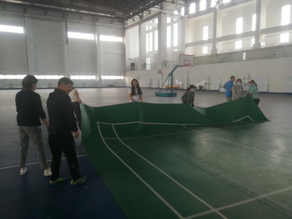 首先由教工支部书记关祥伟带领全体党员,面向党旗重温入党誓词,重温当年的决心和信念。紧接着所有党员将足球馆内的乒乓球台、羽毛球场地等器材收拾整理到指定位置,为改造足球馆地面工程做好前期准备工作。
