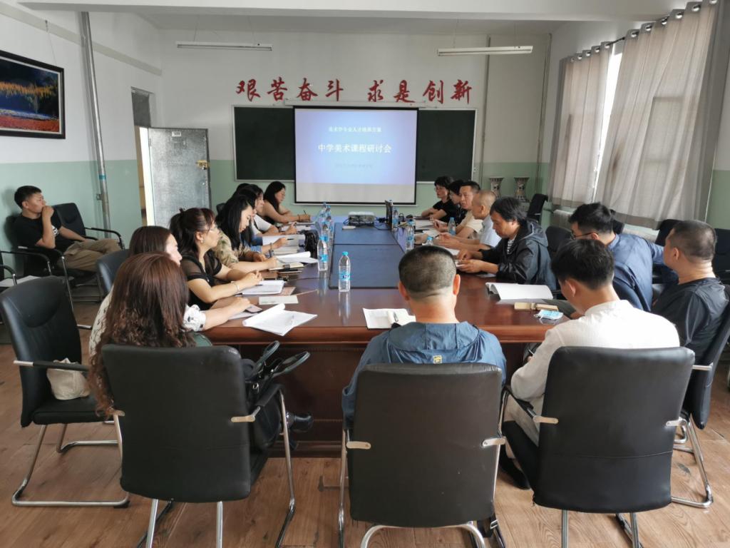 7月1日上午,美术学院在509会议室召开中小学美术课程研讨会。本次会议邀请呼伦贝尔市教育局美术教研员刘宏标、海拉尔区教育局美术教研员王颖以及海拉尔中小学美术骨干教师共9人参会,美术学院李鑫院长、何锡彭副院长以及师范专业相关老师参加会议,会议由何锡彭副院长主持。