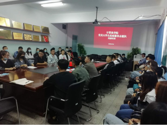 9月7日,在尚行楼309会议室,计算机学院举行大学生党员抗疫志愿服务队专项培训会,党总支副书记赵君主持会议并为党员志愿者进行培训。