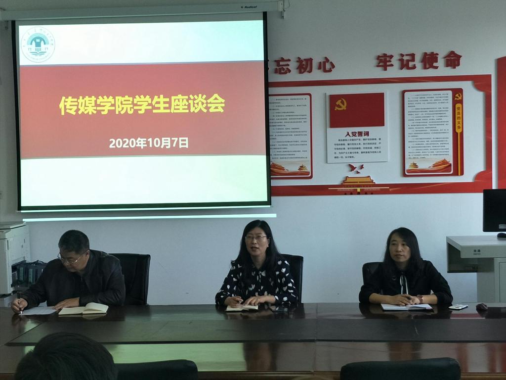 为进一步落实“以生为本”的理念,突出“为学生服务”的宗旨,全面了解大学生对学院各项工作的意见和建议,进一步提升学院教学管理和服务水平,10月7日下午,传媒学院在崇文楼A421会议室召开了“2020-2021学年第一学期学生座谈会”。院长王晓莉、副书记倪俭、副院长林秀丽及11个班级22名学生代表参加会议。