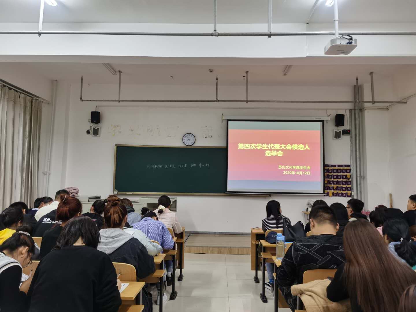 10月12日晚,历史文化学院召开呼伦贝尔学院第四次学生代表大会、共青团呼伦贝尔学院第四次代表大会代表选举会。参加本次会议的有学院团总支书记白苏雅拉图,学生会执行主席庞晓伟以及学生会、各班级代表。