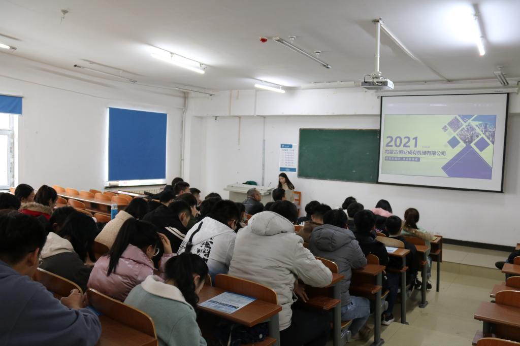 为服务地方经济社会发展,拓宽毕业生就业渠道,缓解大学毕业生就业压力,10月21日、22日,化学化工学院联合内蒙古恒业成有机硅有限公司、中国大唐集团有限公司所属大唐呼伦贝尔化肥有限公司、大唐内蒙古多伦煤化工有限责任公司、内蒙古大唐国际克什克腾煤制天然气有限责任公司、内蒙古君正能源化工集团股份有限公司等多家企业分别在科技楼223教室、工程楼100教室、工程楼215教室举办了2021届毕业生3个专场招聘会。