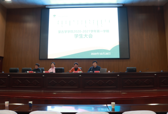 10月28日下午,蒙古学学院在图书馆四楼报告厅召开全体学生大会。蒙古学学院领导班子成员、学工队伍和在校生参加大会。会议由党总支副书记乌云图主持。