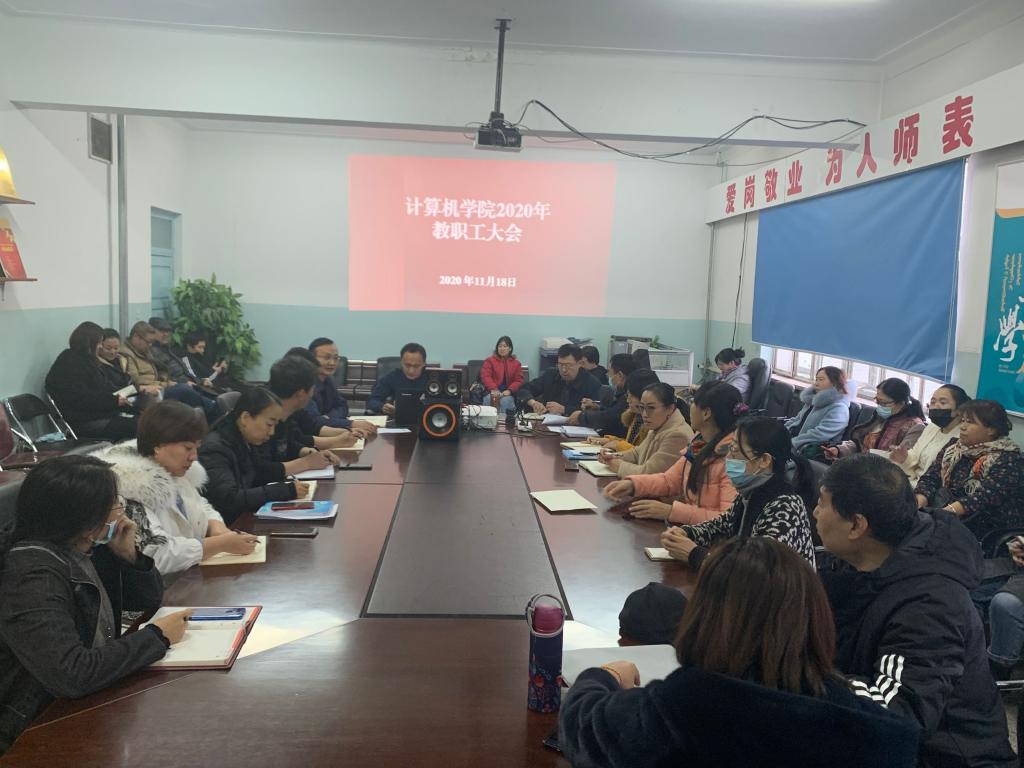 11月18日下午,计算机学院在尚行楼309会议室召开2020年教职工大会。计算机学院领导班子成员以及全体教师参加会议。会议由计算机学院工会主席栗慧峰主持。