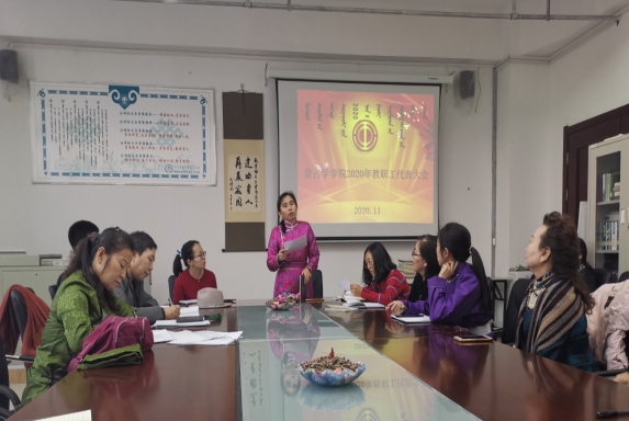 11月25日下午,蒙古学学院在崇文楼B307会议室召开2020年教职工大会,蒙古学学院领导班子及全体教职工参加了本次大会。会议由蒙古学学院分工会主席孔春艳主持。