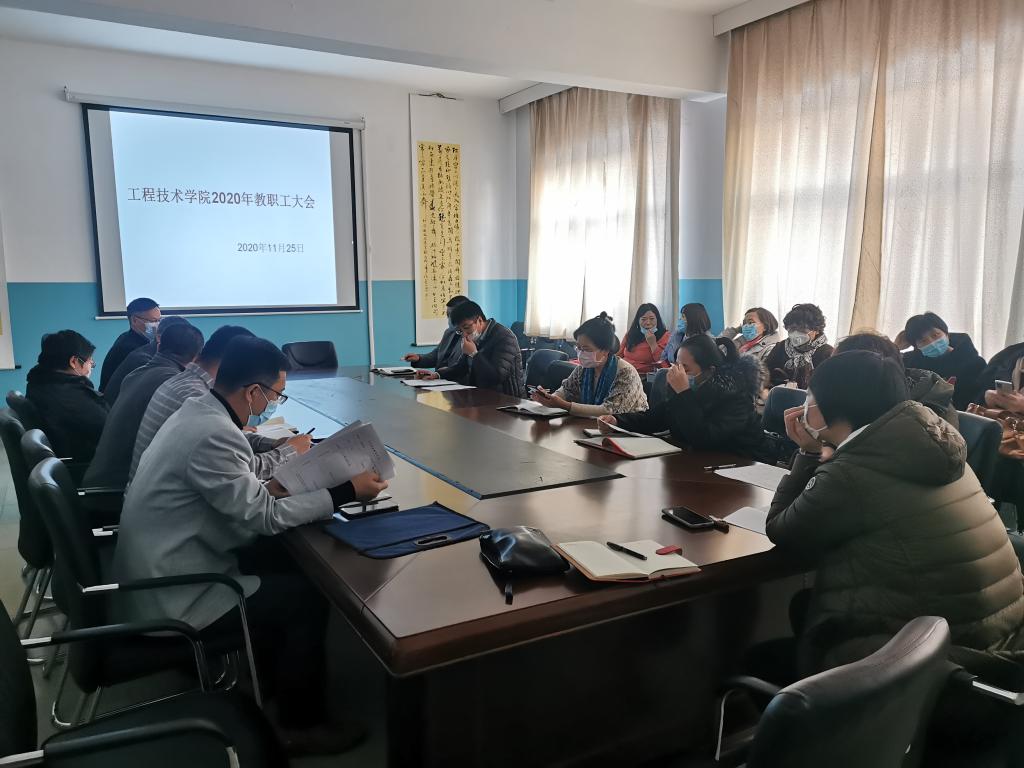 11月25日下午,工程技术学院在笃学楼505会议室召开了2020年教职工代表大会,全体教师参加本次大会。会议由分工会主席方明伟主持。
