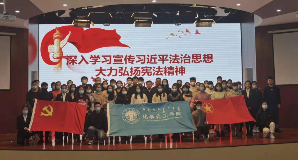 为了深入学习与宣传习近平法治思想,大力弘扬宪法精神,弘扬宪法精神,营造崇尚宪法、学习宪法、宣传宪法、遵守宪法、维护宪法的浓厚氛围,使宪法精神深入每个人的思想,化学化工学院于12月4日下午两点在崇文楼B座七楼小剧场举办“深入学习宣传习近平法治思想,大力弘扬宪法精神”活动。本次活动由学生会主席刘彤主持,化学化工学院党总支副书记刘朋、团学办主任张一帆、团总支书记孟庆永、全体学生党员、团学干部参加了活动。