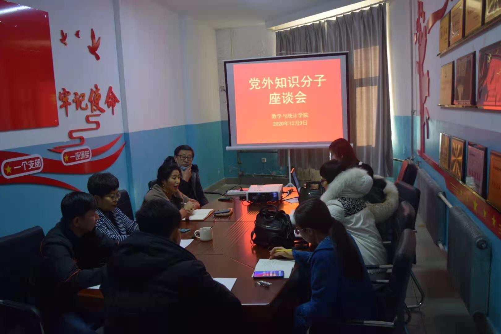 近日,数学与统计学院在笃学楼408党建活动室组织召开了党外知识分子座谈会,民主党派及党外知识分子代表9人参加了座谈,会议由胡旭红书记主持。
