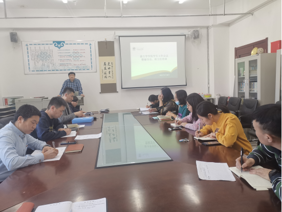 会上,乌云图副书记领学《呼伦贝尔学院辅导员(班主任)队伍建设管理规定(修订)》、《呼伦贝尔学院辅导员工作考核办法》(修订)、《呼伦贝尔学院班主任工作考核办法》(试行)等文件。团学办主任额尔布乐图、副主任呼格吉乐玛就本学年学生工作和共青团重点工作进行解读。班主任、辅导员就有关工作开展讨论。
