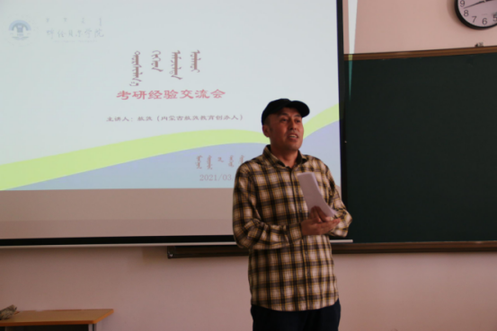 会上敖敦老师详细讲解了中央民族大学、内蒙古大学、内蒙古师范大学、内蒙古民族大学的中国少数民族语言文学专业招收研究生情况以及初试和复试的相关情况,同时为2018级全体学生解答关于考研方面的疑惑,指导同学们如何指定考研目标,阐明坚持目标的重要性。