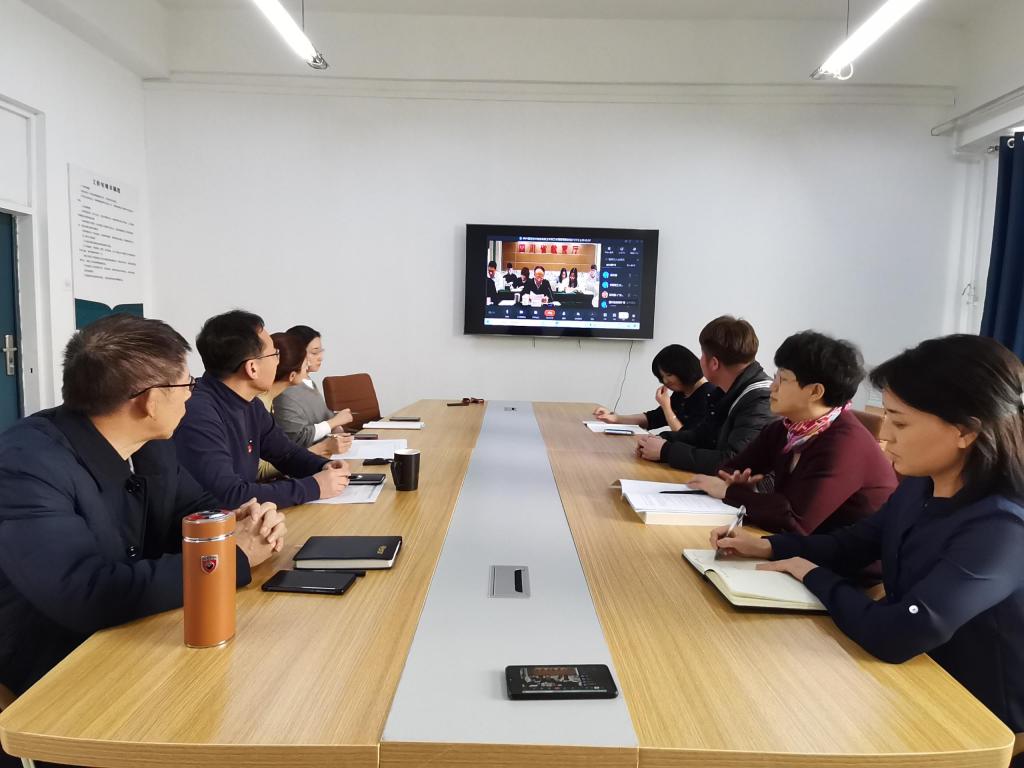 与会人员集体观看了教育部教育司组织召开的2021届普通高校毕业生就业工作第二次调度视频会议。