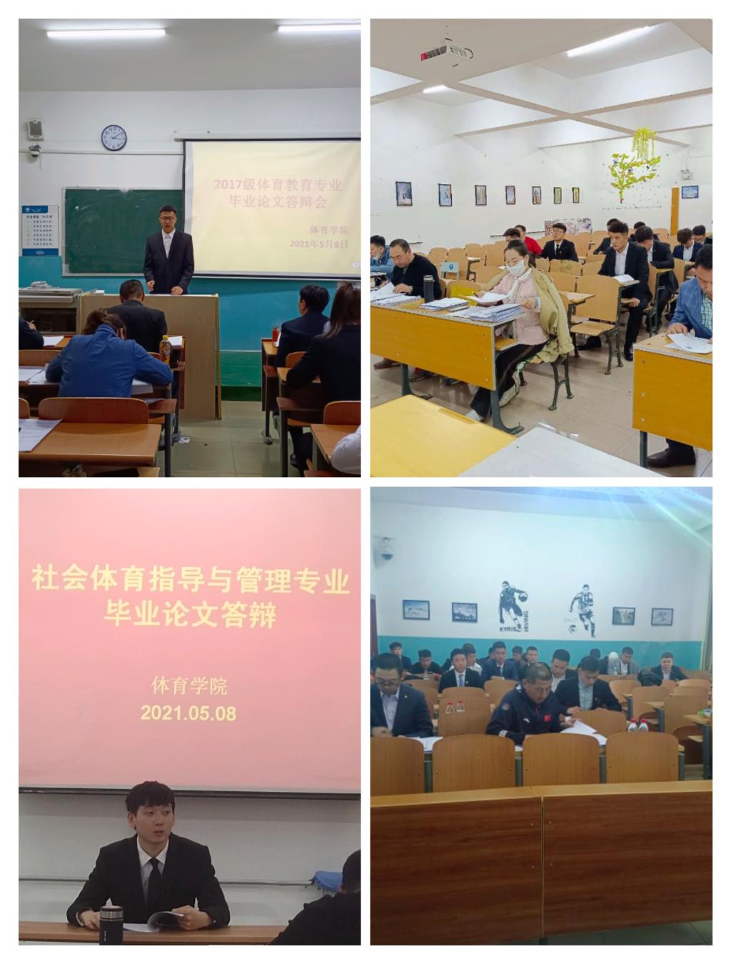 5月8日至12日,体育学院在体育馆举行了2017级毕业论文答辩会。2017级体育教育汉本专业、2017级体育教育蒙本专业、2017级社会体育指导与管理专业,共计74名同学参加了此次答辩。