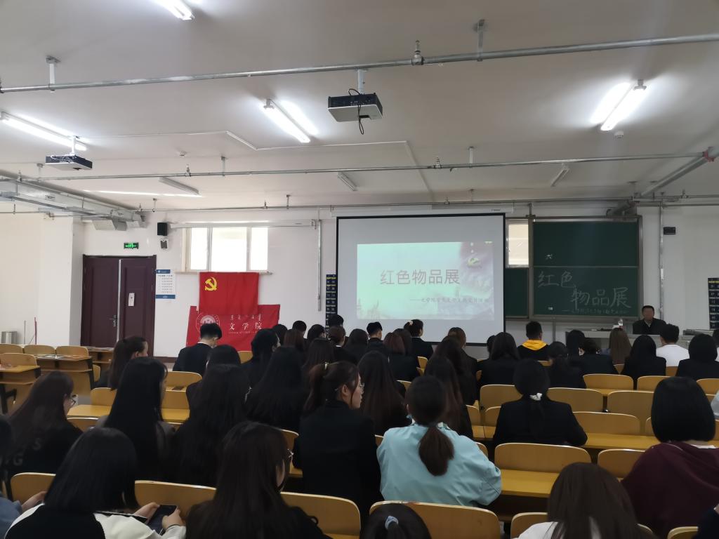 为了庆祝中国共产党成立一百周年,培育和践行社会主义核心价值观,引导同学们学党史,跟党走,强信念,在中国共产党一百岁生日之际,由文学院学生党支部与文学院青年志愿者协会联合举办的红色物品展——学生支部主题党日活动于5月16日在崇文楼B401教室举行。本次党日活动邀请呼伦贝尔红色文化研究会白吉堂会长。
