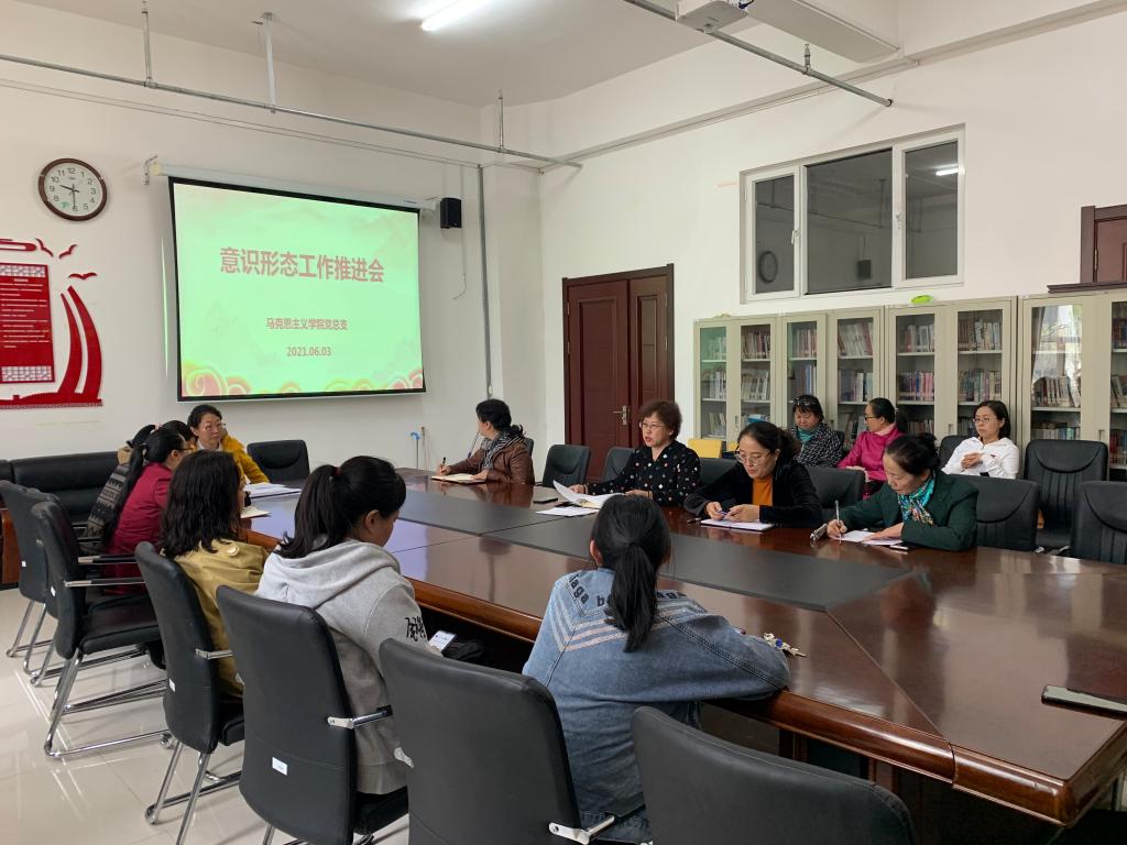 刘凤琴书记指出,一是要充分认识当前意识形态领域面临的风险和挑战。把握关键时间节点,作好意识形态领域风险全面排查。加强值班工作力度,发现问题及时上报;二是要严格意识形态阵地管理,确保意识形态领域的绝对安全。三是要发挥马克思主义学院教师立德树人关键主体作用,牢牢把握课堂主阵地,推进党史学习教育、“四史”教育进课堂并强化实践教育,为培养德智体美劳全面发展的社会主义建设者和接班人提供坚实思想政治保证。