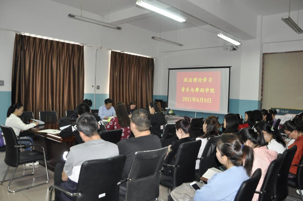 6月9日下午,音乐与舞蹈学院在艺术楼606会议室组织全体教职工进行政治理论学习。