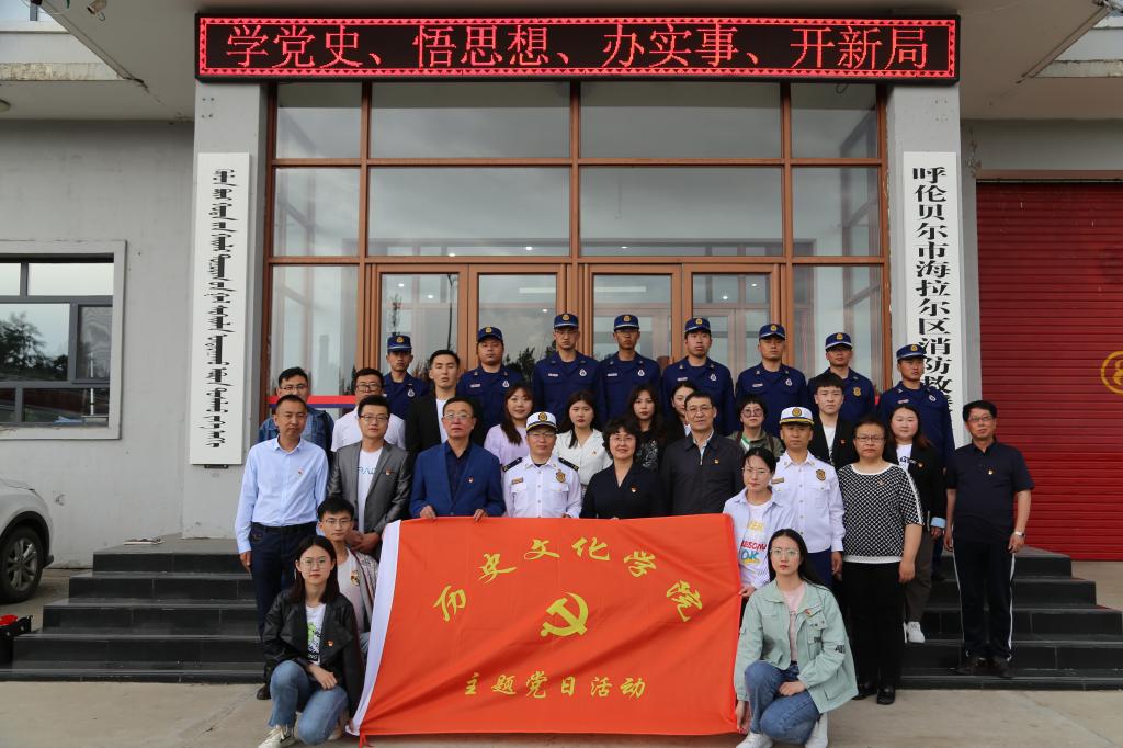 6月8日下午,历史文化学院和纪委监察专员办公室的部分师生党员前往海拉尔区消防救援大队联合开展主题党日活动,并举行历史文化学院与海拉尔区消防救援大队融合党建签约仪式。海拉尔区消防救援大队党委书记马国壮、大队长吕洪林、副大队长李春生,永利yl23411集团官网纪委副书记、纪委监察专员办公室主任郭书利、副主任王慧媛,历史文化学院党总支书记梁云、院长乌日图、党总支副书记韩治平、副院长赵金辉出席了签约仪式和主题党日活动。
