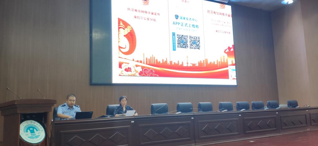 为了深入推进党史学习教育,切实落实“我为群众办实事”实践活动,6月9日下午,根据一线调研结果,就学生关心关注的网络诈骗问题,旅游与地理学院党总支邀请海拉尔公安分局刑事侦查大队副大队长薛文冬警官在图书馆四楼报告厅开展“电信网络诈骗简介及防范”专题讲座。旅游与地理学院全体师生参加。