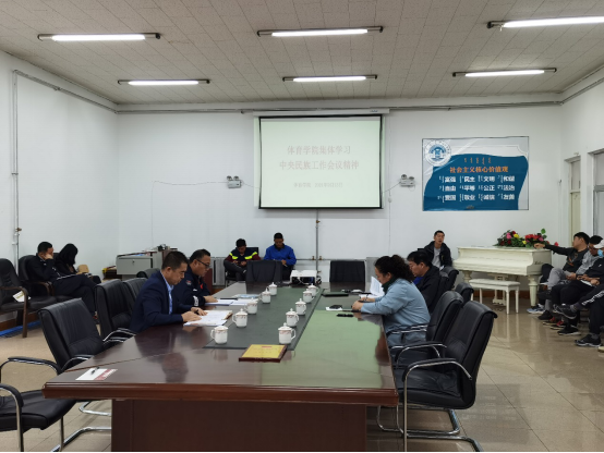 9月13日上午,体育学院组织全体教师集体学习习近平总书记在8月27日—28日中央民族会议重要讲话精神。