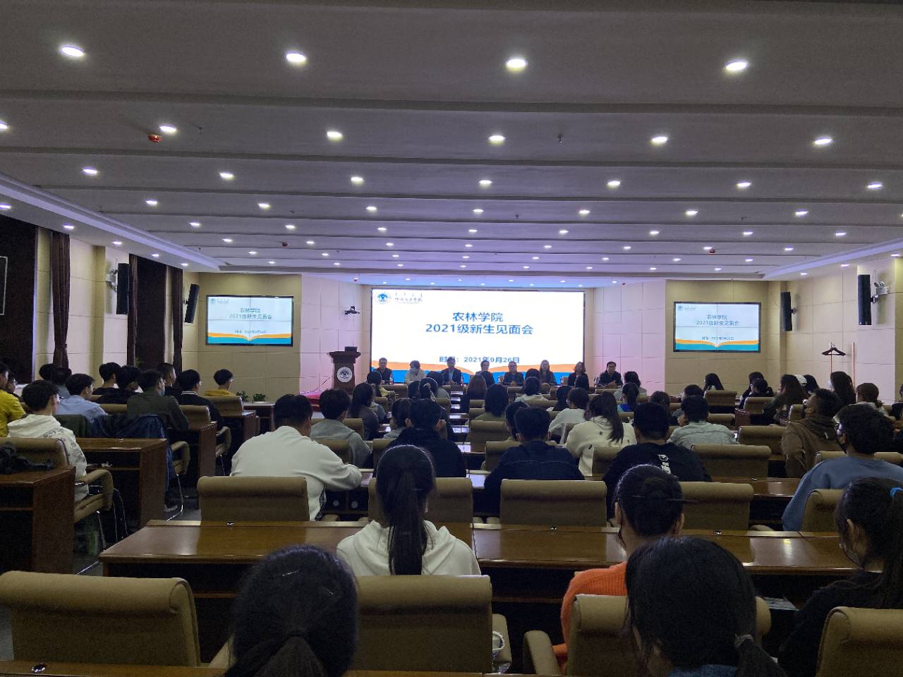 9月26日晚,农林学院在崇文楼A201会议室召开新生见面会。会议由团学办主任王兆文老师主持,农林学院班子成员、系主任、教研办、团学班、辅导员、班主任和2021级全体学生参加。