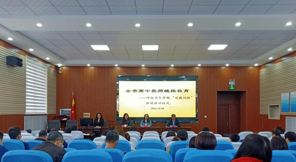 10月9日上午,2021年全市高中教师继续教育“送教到校”活动启动仪式在海拉尔铁路第一中学举行。继续教育学院院长莎茹莉、副院长孙志文、授课教师范起超、何国林、邱慧、海拉尔铁路第一中学方秀艳校长及海拉尔铁路第一中学全体教师参加了启动仪式。
