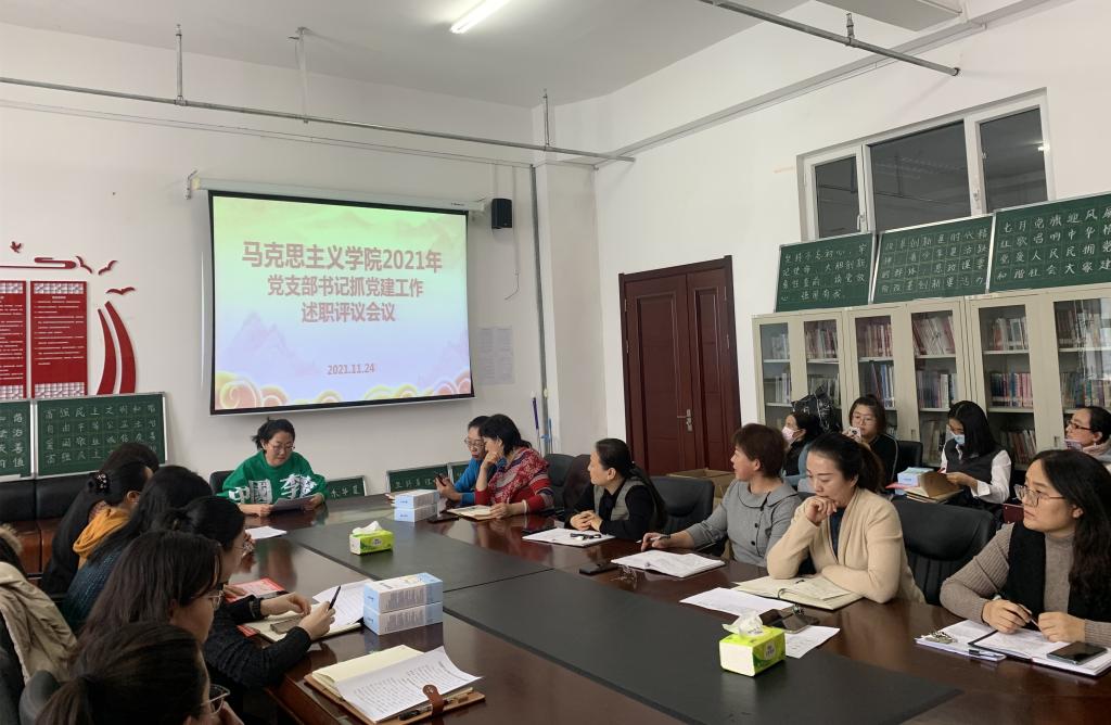 11月24日下午,马克思主义学院党总支在崇文楼B123会议室召开全体党员大会,对本年度党建工作进行民主评议,总结2021年各党支部已开展工作完成情况,安排部署下步重点任务。会议由马克思主义学院党总支书记刘凤琴主持,全体党员教职工参加会议。