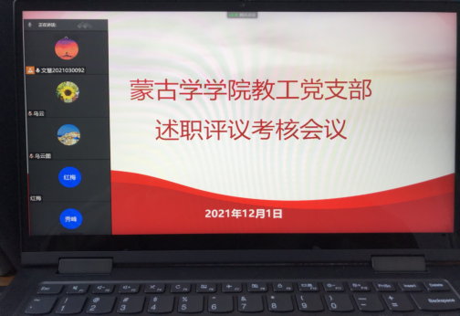 12月1日下午,蒙古学学院党总支以线上形式先后组织教工党支部和学生党支部在线上召开党支部书记述职评议考核会议。学院教职工党员、学生党员和部分群众师生代参加,会议由教工党支部副书记文慧和学生党支部书记孔春艳分别主持。