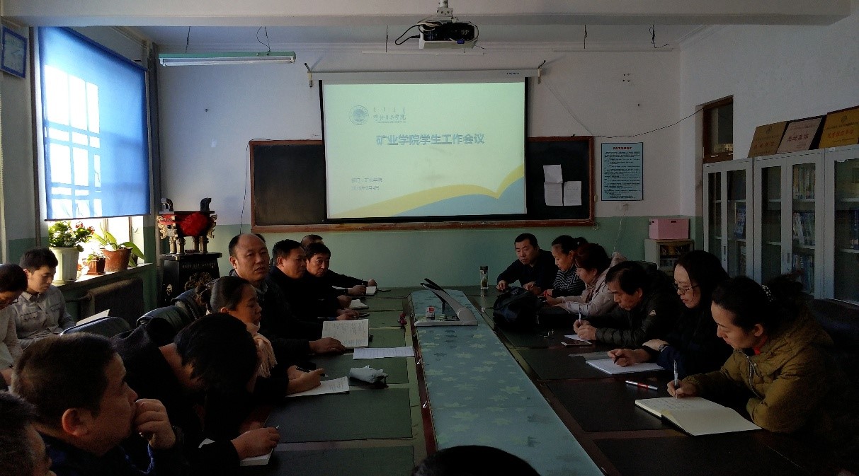 3月4日,矿业学院党总支副书记张福友结合3月1日安全工作会议的具体内容,主持召开了新学期学生工作会议,各年级班主任参加了会议。