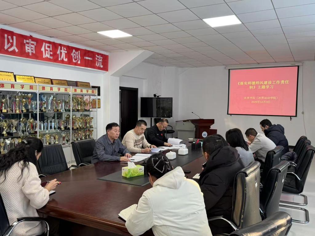 为深入贯彻落实学校师德师风建设工作要求,进一步加强教师队伍建设,12月3日,体育学院(冰雪运动学院)组织全体教职工开展师德师风专题学习活动。