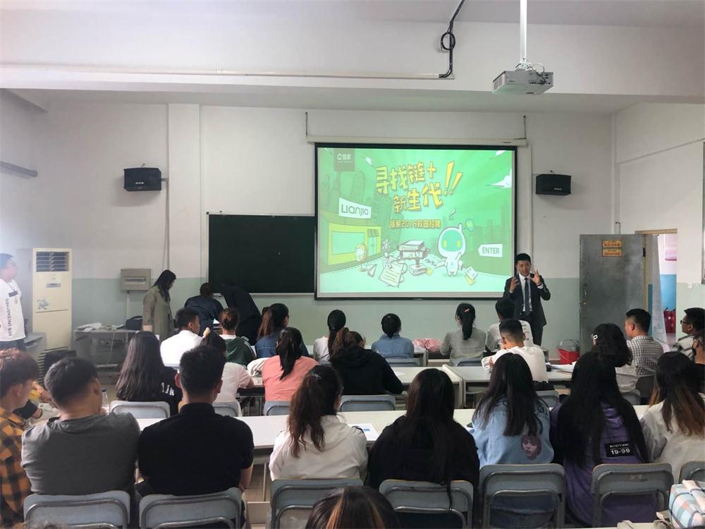 北京链家房地产经纪有限公司目前已覆盖北京、上海、广州、深圳、天津、武汉、成都、青岛、重庆、大连、合肥等28个地区 ,全国门店数量约8000家,旗下经纪人超过13万名。公司2001年成立,实力雄厚、发展前景广阔。招聘公司代表详细介绍了该公司的发展前景、公司发展方向、入职后的待遇等问题,以及此次主要招聘的岗位。学生们踊跃的递交了个人简历,招聘会共有120名同学参加,现场共有7名同学通过面试。