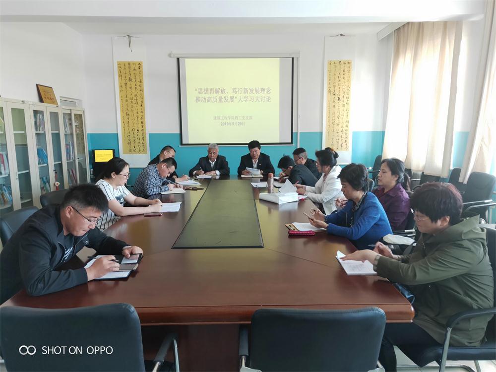 为更好地学习贯彻习近平新时代中国特色社会主义思想,扎实落实习近平总书记对内蒙古的重要讲话精神,按照学校开展“思想再解放、笃行新发展理念,推动高质量发展”大学习大讨论工作安排,建筑工程学院教工党支部于5月29日下午在笃学楼505室召开专题学习讨论会。会议由支部书记格根塔娜主持,全体教工党员参加。