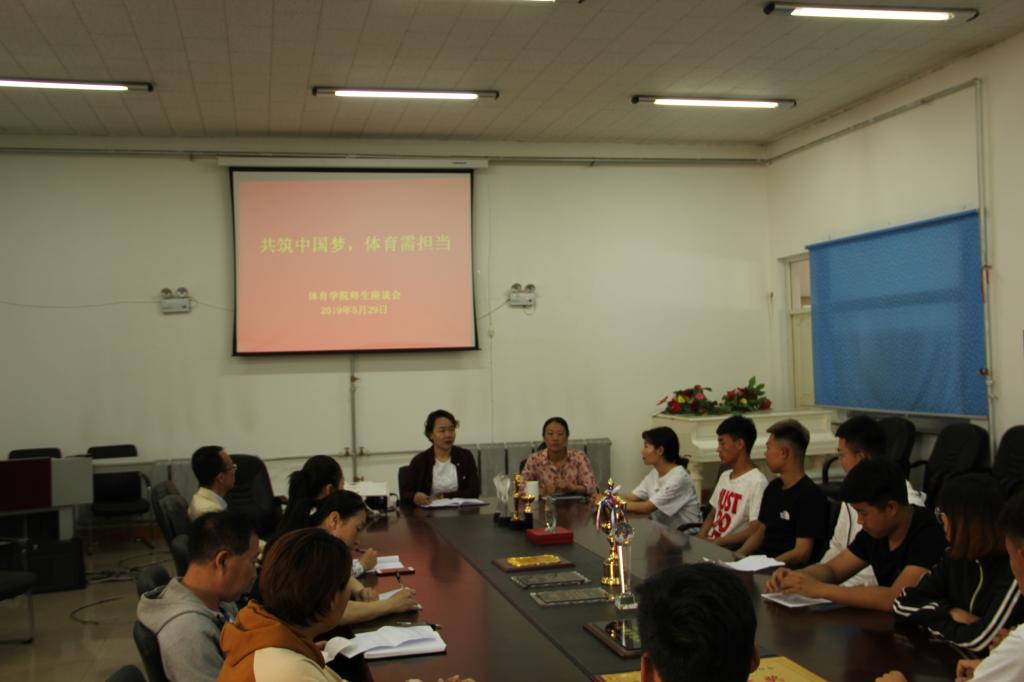 5月29日,在体育馆三楼会议室,体育学院副院长崔兰英组织召开了“共筑中国梦,体育需担当”师生座谈会。体育学院教师及学生代表参加了本次座谈会。