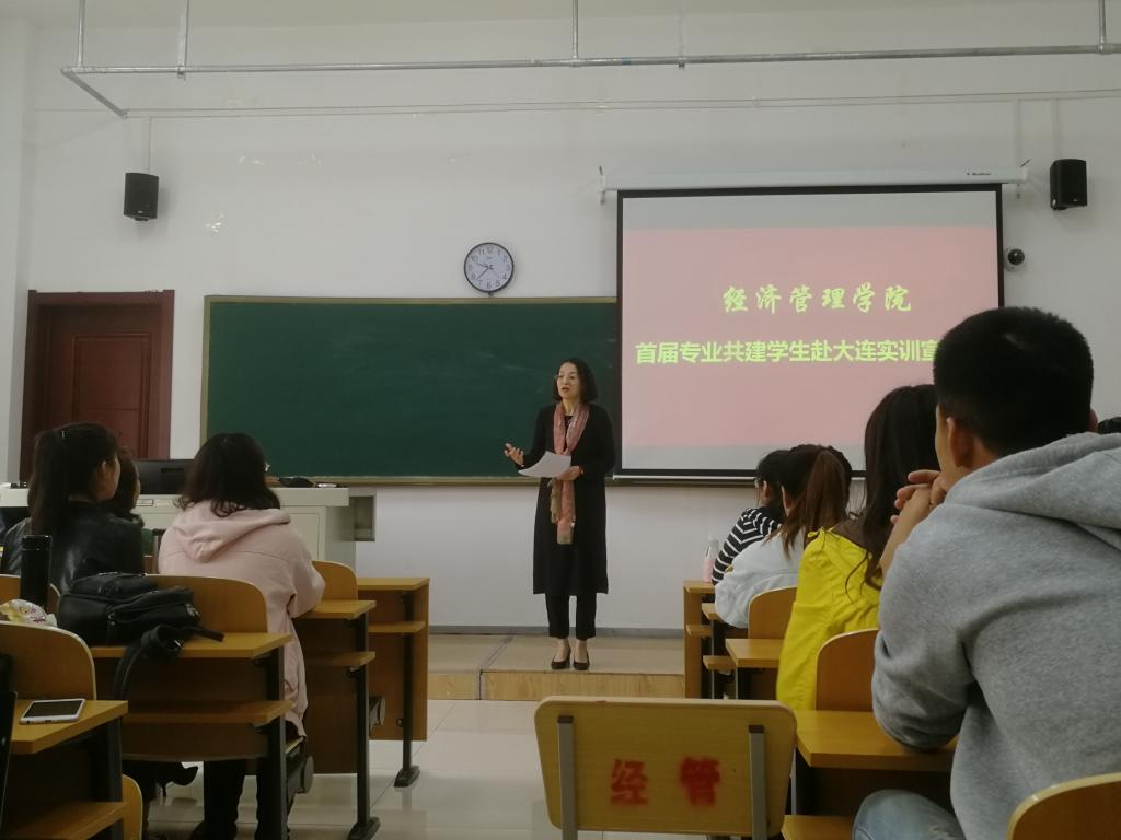 首先,经济管理学院崔丽辉副院长对即将启程的同学们表达了美好的祝愿和诚挚的期望,同时就毕业论文、毕业实习等相关事项和学校规章制度进行说明,崔院长希望同学们在大连的学习和生活中能取得更好地成绩、在学习专业知识的同时不忘实践能力的锻炼,力争在未来的工作岗位中获得更强大的竞争力,崔院长还就学生在高校、培训基地、社会工作岗位之间衔接、适应的问题上进行了分析和指导。
