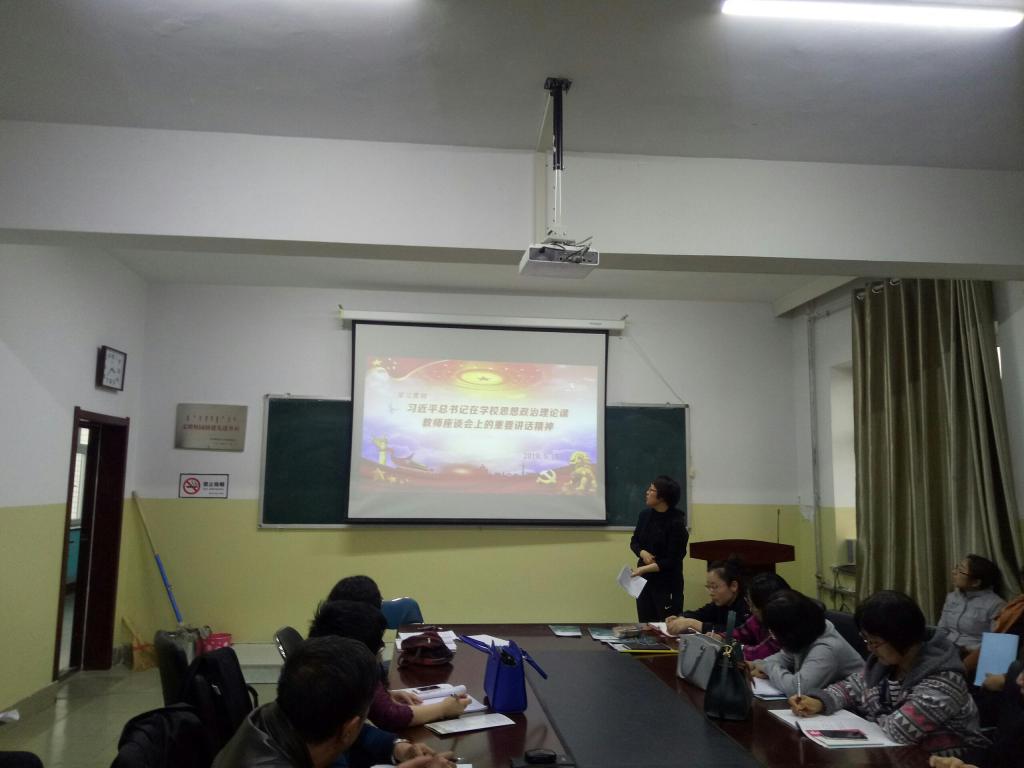 雪晴副书记带领全体教师学习了习近平总书记在学校思想政治理论课教师座谈会上的重要讲话精神,并从三个部分做了详细解读。