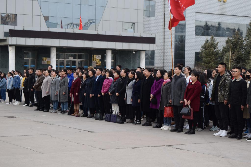 4月22日清晨,数学与统计学院在综合楼前举行升国旗仪式。校团委领导、学院领导、辅导员班主任、部分任课教师及全体在校生参加了升旗仪式。