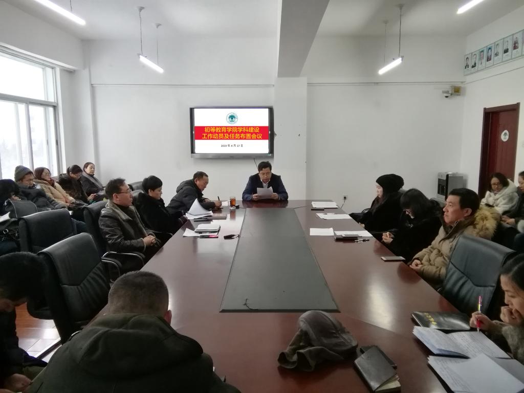 4月17日下午,初等教育学院学科建设工作动员及任务布置会在艺术楼二楼会议室召开。会议由院长吕佩臣主持,班子成员、系主任和任课教师参加会议。会上,吕院长传达2019年呼伦贝尔学院学科建设会议上,校党委书记韩猛《提高认识明确责任扎实推进把学科建设工作抓紧抓好》和校长王曙光《抢抓机遇攻坚克难奋力开创学科建设工作新局面》的讲话精神。
