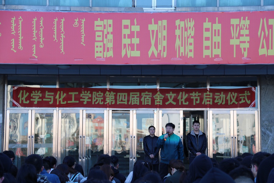 化学与化工学院于4月11日在综合楼门前举行了第四届宿舍文化节启动仪式。党总支书记刘建华、副院长钱广华,学工办代理主任郭长春,团总支代理书记孟庆永出席了本次活动。