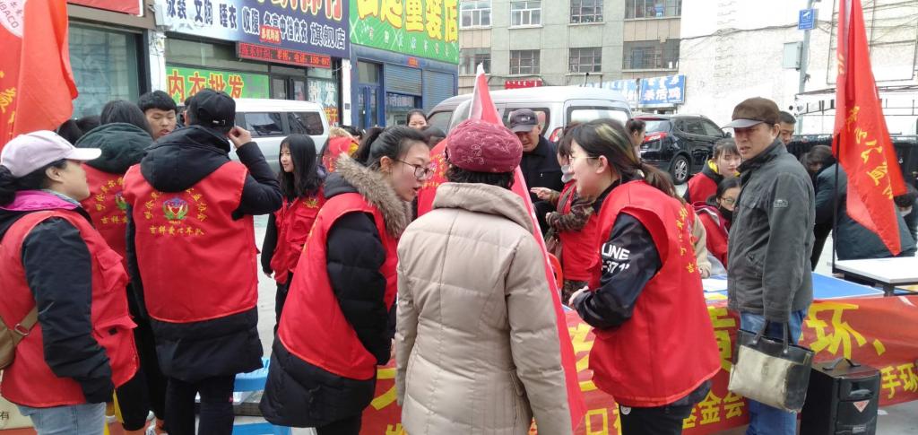 4月13日下午,传媒学院青年志愿者协会组织19名志愿者在海悦城参加了由呼伦贝尔市爱心公益协会主办的结核病防治宣传及黄手环免费发放活动。