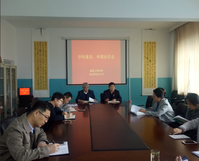 4月17日下午,建筑工程学院在笃学楼五楼会议室召开学科建设、申硕动员大会,院长王建华、副书记张仁杰、副院长官志文、副院长张济梅及全体教职工参加会议,会议由王建华院长主持。