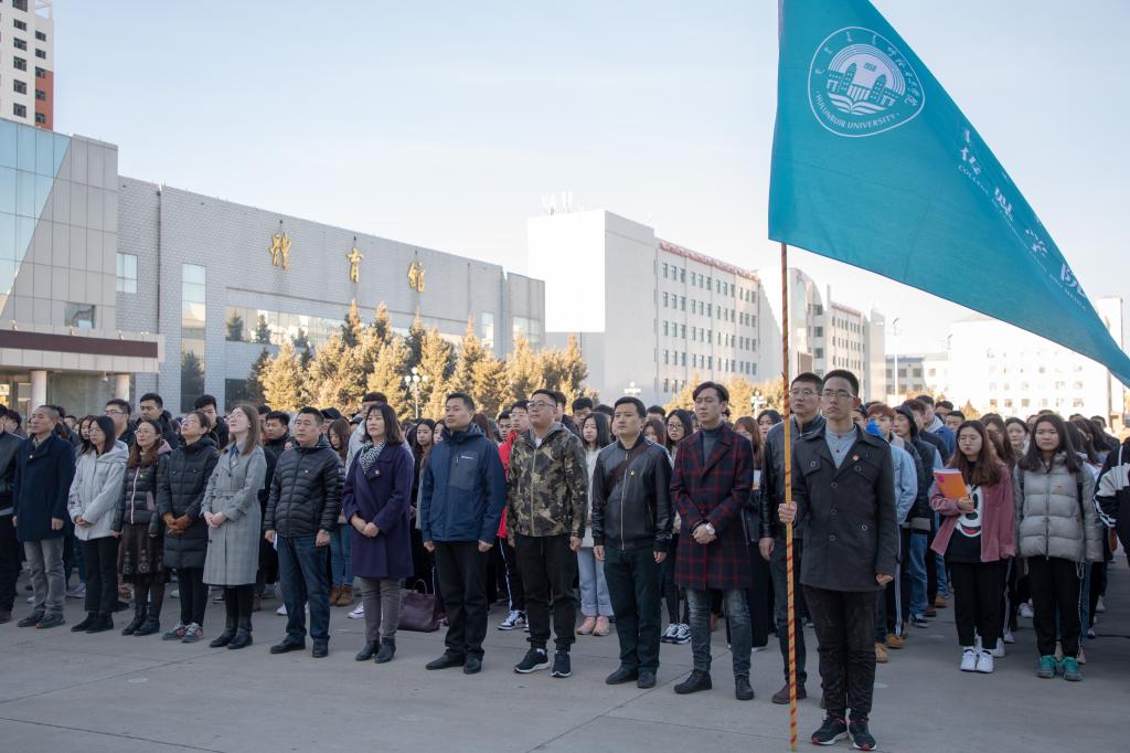 为迎接中华人民共和国成立70周年,进一步加强爱国主义教育,增强师生集体荣誉感和民族责任感,4月8日清晨,传媒学院全体师生在尚行楼前举行了升国旗仪式。