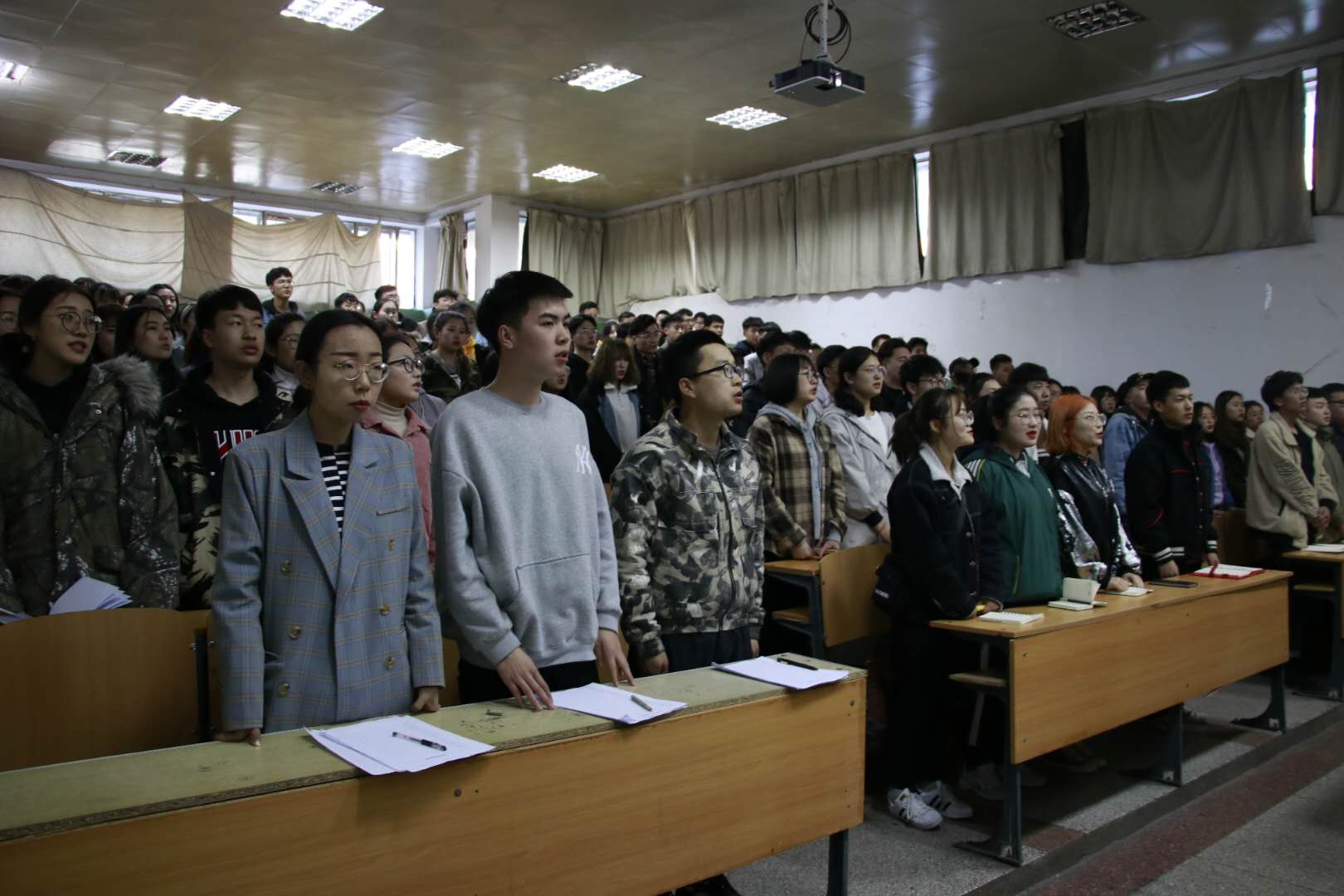 由美术学院团总支书记梅丽斯担任主讲。会议开始前,同学们起立合唱中华人民共和国国歌,在场的每位同学都庄严肃穆,心中升起一种无限振奋,无限光荣的情感。讲话内容主要围绕自治区第十四次团代会以来的改革创新探索;准确把握当前形势的深刻变化;以全面过硬的团建汇聚磅礴青春力量,推动全区共青团事业实现创新发展三方面展开。开展党性教育,为的是增强团员意识,将党团带进专业带进班里。