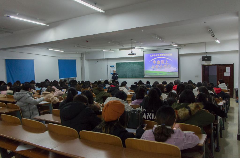 讲座伊始,廖老师从各大高校的安全教育角度出发,明确的指出大学生安全知识教育的重要性,让同学们认识到安全事故的危害性以及学习安全知识的重要性。其次廖老师从人身安全、宿舍安全、出行安全、食品安全、求职安全等多个方面为同学们列举了一些丰富鲜活的真实案例,同时和在场的学生进行问答互动,从中有效地指导大家在遇到突发的安全事故时应如何妥善处理。最后,廖老师特别强调了关于校园网贷事故多发的现象,他特别指出校园网贷深似海,提醒同学们一定不要踏上这条不归路,并且时刻警醒身边的同学。
