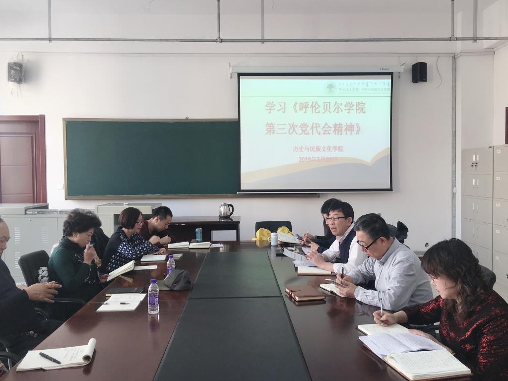 为了深入贯彻学校第三次党代会会议精神,统一思想、凝聚共识,历史与民族文化学院根据《关于宣传贯彻学校第三次党代会精神的通知》要求,于3月20日下午在会议室组织全体教职工全面学习了学校第三次党代会会议精神。学习活动由党总支书记李雅杰主持,乌日图院长、梁云副院长及全体教职工参加了学习。