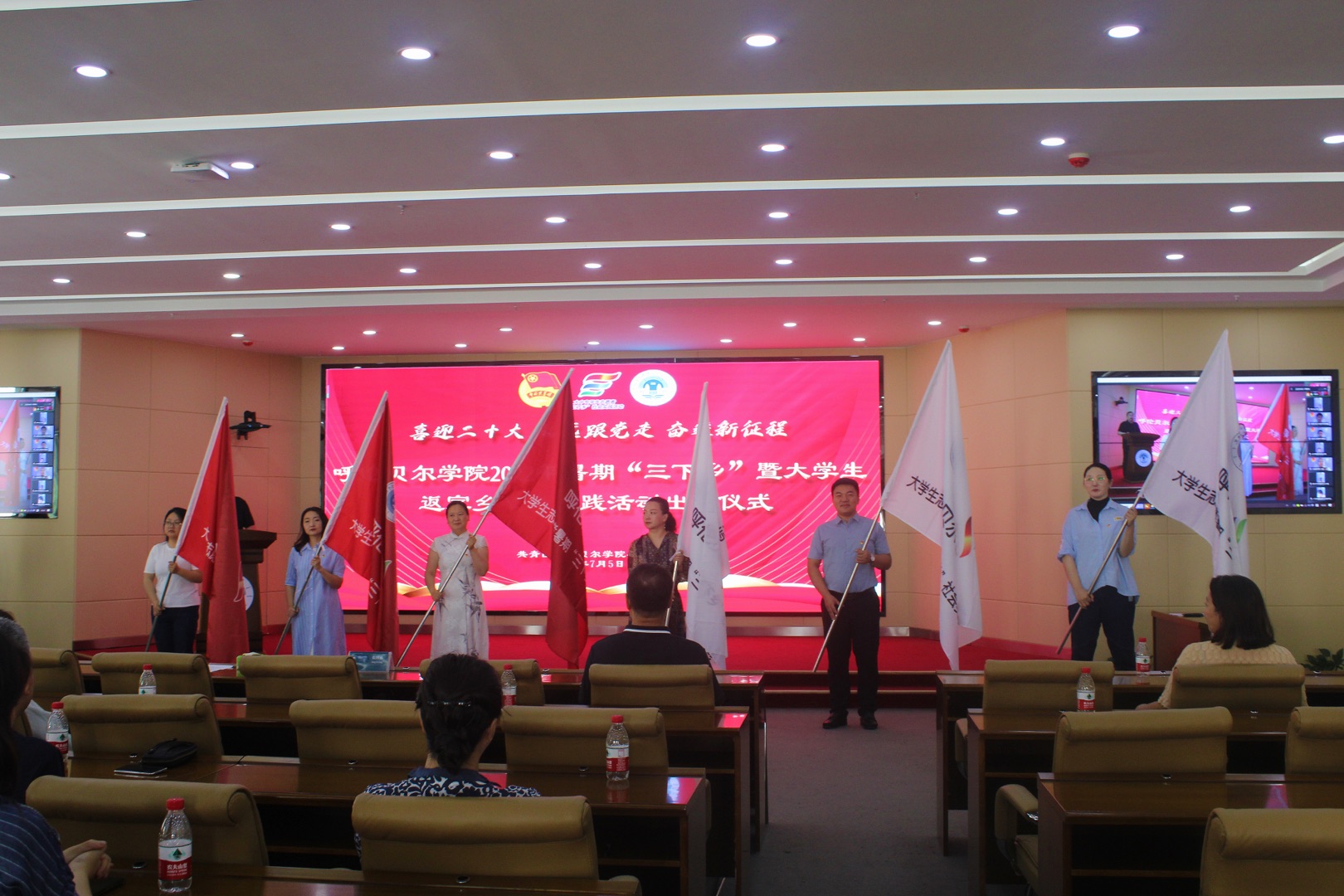 根据《关于开展2022年全国大中专学生志愿者暑期文化科技卫生“三下乡”社会实践的通知》文件精神,7月5日上午,永利yl23411集团官网在崇文楼A201会议室举行了呼伦贝尔学院2022年暑期“三下乡”暨大学生返家乡社会实践活动出征仪式。活动以线上线下相结合的形式开展,党委副书记张国栋,团委书记郝新君,各学院负责团学工作的主要领导、团总支书记及实践团代表共计147人参加仪式。
