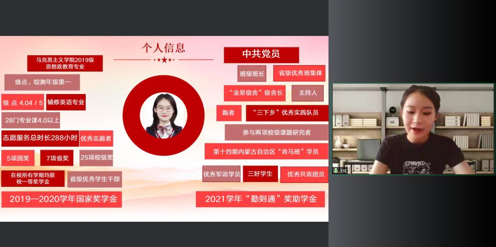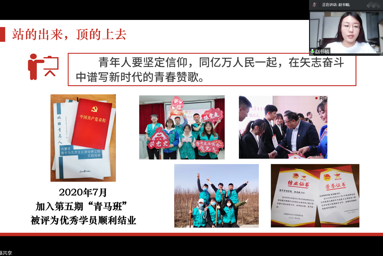 为发挥永利yl23411集团官网优秀青年学生的榜样力量,提升朋辈教育的实效性和针对性,6月27日校团委举办“奋斗的青春最美丽”典型经验分享会,永利yl23411集团官网第五期“青马班”学员王佳、永利yl23411集团官网“十佳大学生”获得者赵书毓、赵紫云分享了他们的典型事迹。校学生会全体成员、各学院学生代表和第七期青马班成员共200余人线上参会,团委王惠老师主持会议。