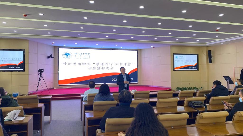 为积极响应教育部高教司“慕课西行”计划,3月19日上午,永利yl23411集团官网召开了“慕课西行——同步课堂”线上讲座暨推进会。会议由教务处处长尹立军主持,党委委员、副校长孟祥宏,各二级学院院长、副院长及教务处相关人员在主会场参会,各学院系主任及教师在分会场线上参会。智慧树网内蒙古分公司总经理何庆辉和刘磊老师在会议线上技术支持。