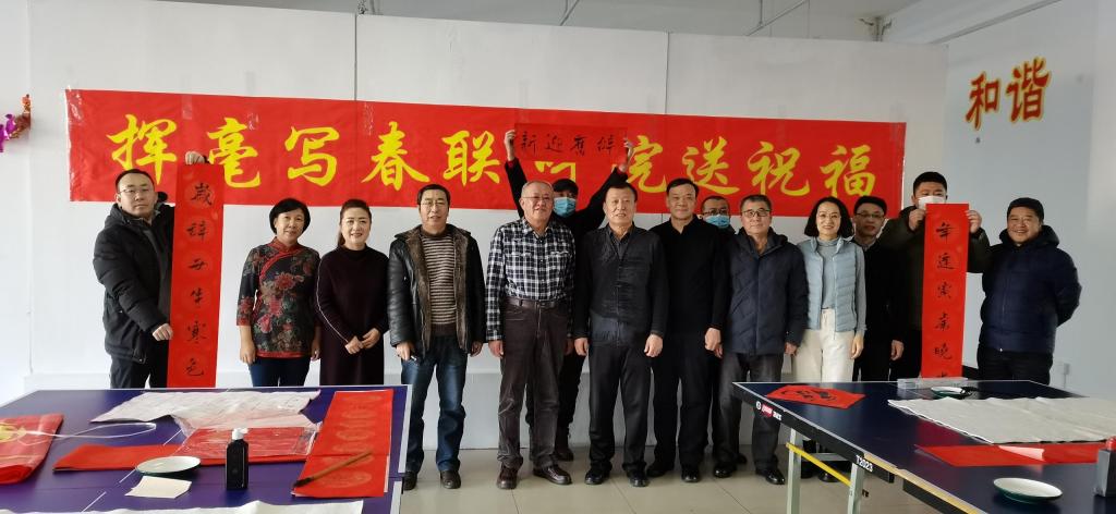 春节即将来临,为进一步弘扬中华优秀文化传统,丰富广大教职工精神文化生活,营造欢乐祥和的节日气氛,1月11日上午,校工会在教职工活动中心举办了主题为“挥毫写春联 新年送祝福”迎新年送祝福活动。此次活动邀请了呼伦贝尔市著名书法家和永利yl23411集团官网专业书法教师现场书写春联为永利yl23411集团官网教职工送上新年的祝福。校工会主席邱玉臣、团委书记郝新君、工会副主席孙桂平和在职、退休教职工参加了活动。