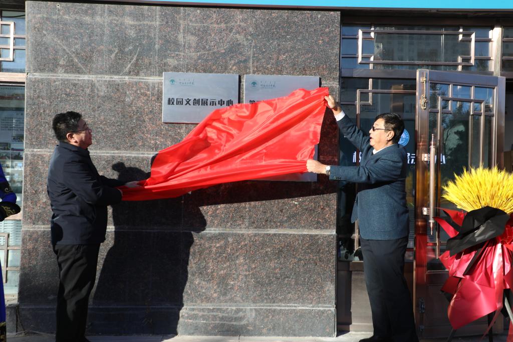 揭牌仪式上,王广利书记和李文阁校长共同为“呼伦贝尔学院校园文创展示中心”揭牌。