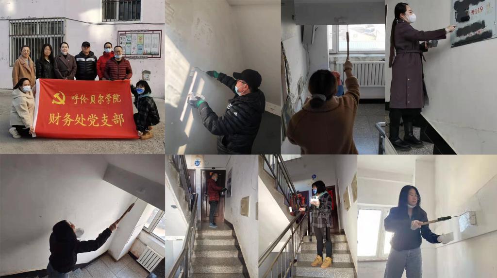 为助力呼伦贝尔市创城,扎实开展“我为群众办实事”实践活动,10月22日下午,财务处党支部联合海拉尔区民委、奋斗镇蓝盾社区开展“决战创城,党员先锋在行动”主题党日活动,对成吉思汗中路西侧部分小区楼道进行了粉刷。