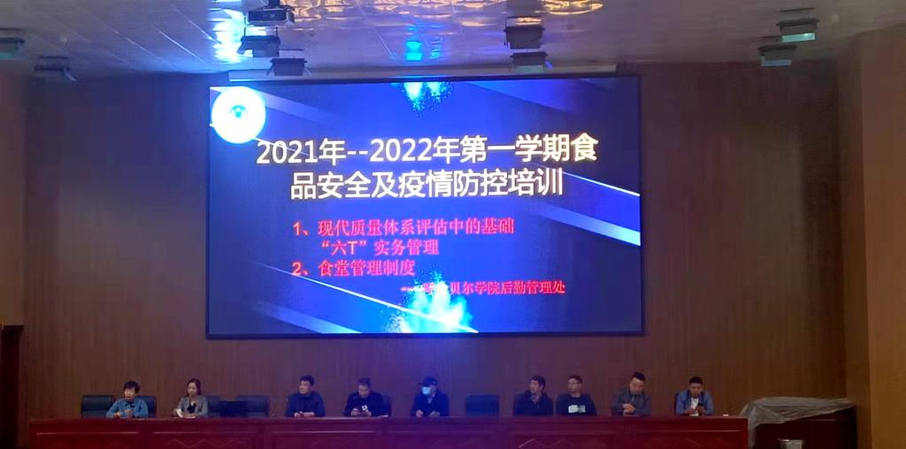 为贯彻落实内蒙古自治区及永利yl23411集团官网2021年秋季开学安全工作的会议精神,切实加强学校食堂食品安全监管工作,维护师生的饮食安全,9月10日上午,后勤管理处饮食服务中心组织全体工作人员及三所食堂全体管理人员、从业人员350余人,在图书馆四楼报告厅召开了2021年—2022年第一学期食品安全及疫情防控培训会。